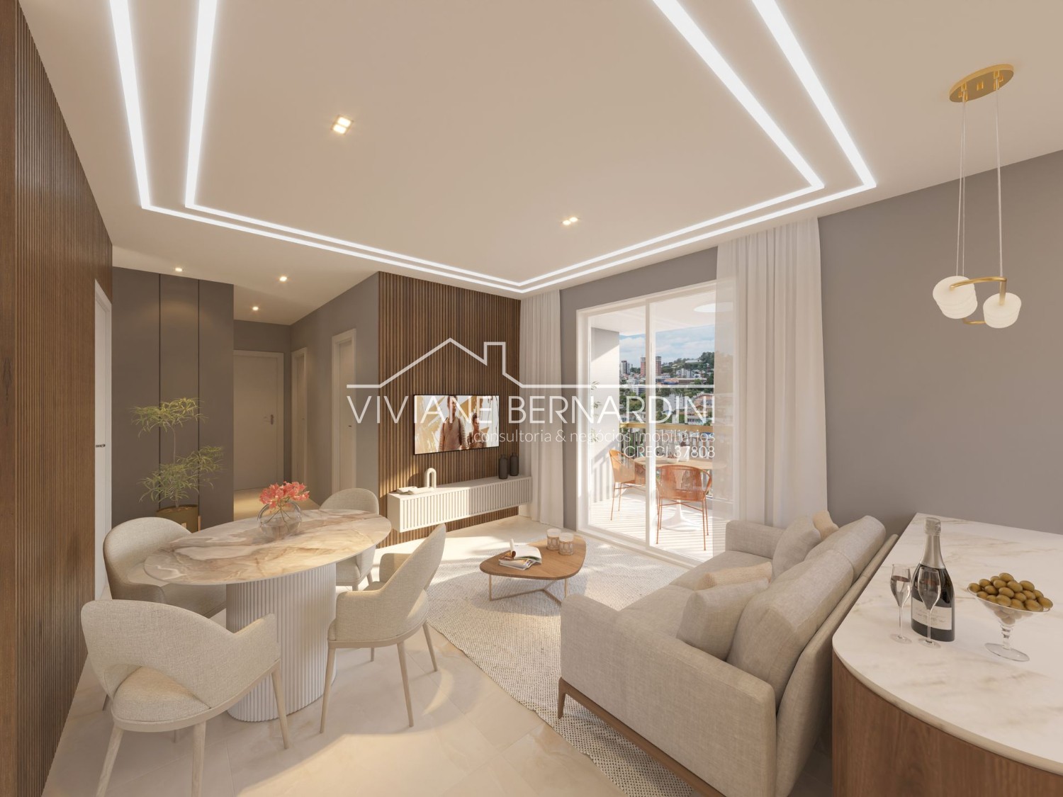 Descrição › Apartamento de dois dormitórios, sala de estar e jantar integradas, cozinha, área de serviço, churrasqueira, sacada aberta.