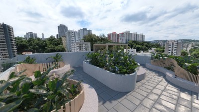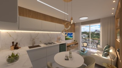 Descrição › Apartamento de dois dormitórios, sala de estar e jantar integradas, cozinha, área de serviço, churrasqueira, sacada aberta.