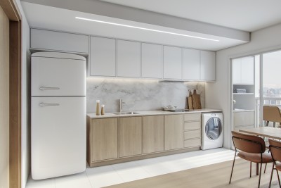 Descrição › APARTAMENTO DE DOIS DORMITÓRIOS COMPOSTO DE SALA DE ESTAR/JANTAR/COZINHA, BANHEIRO SOCIAL, VARANDA COM CHURRASQUEIRA,LAVANDERIA E VAGA DE ESTACIONAMENTO.
