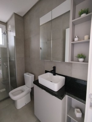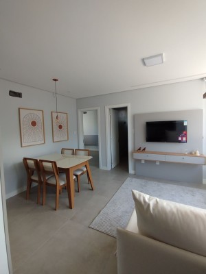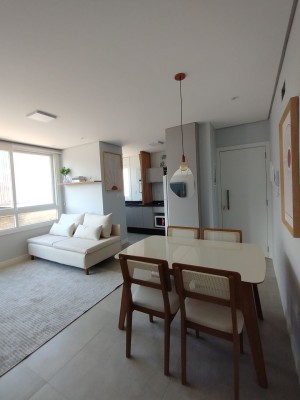 Composto de um dormitório, sala de estar e jantar, cozinha, área de serviço com churrasqueira, banheiro com ventilação natural. Possibilidade de separar a área de serviço da cozinha com movelaria.