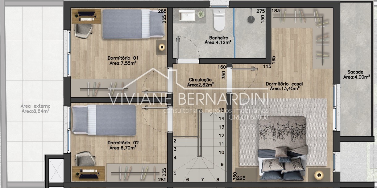 Descrição › Sobrado de dois andares, composto de 03 dormitórios, banheiro no andar superior.