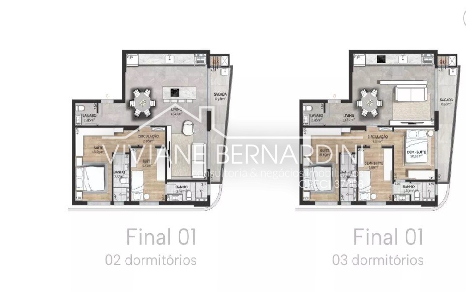 Possibilidade de planta com dois dormitórios.