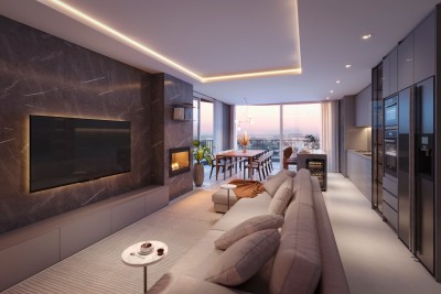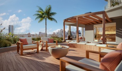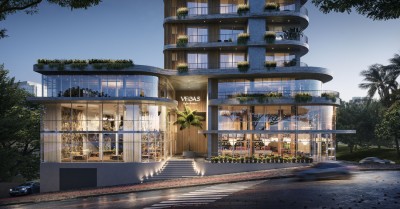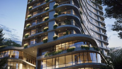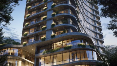 A arquitetura orgânica do Vegas Life Home se destaca ao contornar a paisagem urbana.